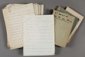 Manuscrit autographe, rédigé à l’encre bleue, contenant 602 pages précédées d’un avant-propos de 2 pages titré «Les Rodeurs». Il compte 20 chapitres.Le manuscrit comporte un certain nombre de biffures, corrections et surcharges, moins...