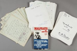 Manuscrit autographe de 313 pages, rédigé à l’encre bleue, sur feuilles traditionnelles vertes, corrigé en noir et en rouge, composé de 15 chapitres, précédés de la page de titre et de la dédicace à Jeannot Rossi.Le manuscrit est...