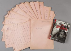 Manuscrit autographe de 466 pages, rédigé sur des feuillets roses, à l’encre bleue, composé de 22 chapitres. Le manuscrit présente des biffures, ratures, surcharges et corrections. Il débute par une page de titre «Marche ou crève»...