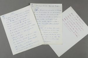 [Trafic d’or] Manuscrit de 4 pages dans lequel Auguste le Breton disserte sur les gangsters et le trafic d’or, transitant notamment par Karachi. Les 4 pages sont écrites à l’encre bleue, un cinquième feuillet à l’encre rouge concerne...