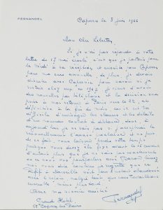 FERNANDEL de son vrai nom Fernand Contandin (1903-1971) acteur et humoriste marseillais.Deux lettres autographes signées adressées les 30 avril et 8 juin 1966 à Auguste le Breton à propos du projet avorté de voir écrire puis réaliser au...