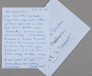 recherche des histoires plus farfelues». 1 page in-12 avec enveloppe.
