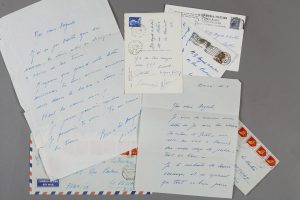 trois cartes postales signées «Lino», de 1957, 61 et 62. 2 pages in-4 avec enveloppes.