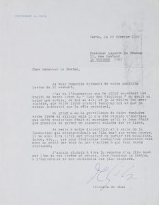 Vittorio de SICA (1901-1974) réalisateur, metteur en scène et acteur italien.Lettre signée adressée de Paris, le 22 février 1967, à le Breton, lui signifiant qu’il serait très tenté pour jouer le rôle principal de son nouveau roman, porté...