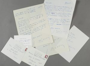 d’adaptation du film. Il est joint un billet signé sur le même sujet ainsi qu’une lettre manuscrite datée du 20 juillet 1961 à propos de la future réalisation de son film «Maléfices», d’après le roman de Boileau-Narcejac, pour lequel il souhaite engagé Juliette Gré-co et Liselotte Pulver, ce qu’il fera. On trouve encore une carte signée de la même époque.