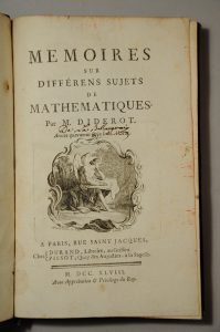 DIDEROT, Denis. Mémoires sur différens sujets de mathématiques. Par M. Diderot. A Paris, rue Saint Jacques, chez Durand et Pissot. 1748. In-8, VI pages, (3 ff), 243 pages. plein veau raciné. Reliure du temps. (Un coin frotté. La planche I est...