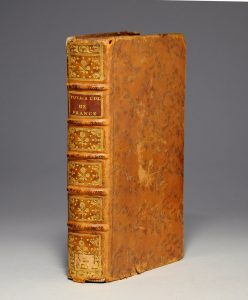 Merlin, Libraire. 1773. 2 tomes en 1 volume in-8, plein veau raciné. Reliure du temps. (Coiffes et coins usés ; 1 mors fendu sur 5 cm. Les planches simples sont un peu roussies.) Edition originale, ornée d'un frontispice, de 5 planches hors-texte (dont 3 dépliantes) d'après Moreau, et de 4 tableaux dépliants pour les instructions nautiques.