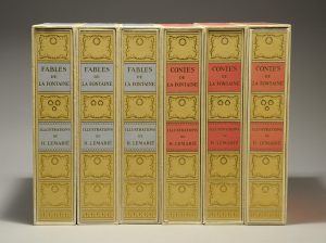 LA FONTAINE, Jean de. Fables. Illustrations de Henry Lemarié. Paris, Les Heures Claires, 1966. 3 volumes in-4°, en feuilles, sous chemises et étuis. 60 charmantes vignettes en couleurs de Henry Lemarié. Tirage à 3450 exemplaires sur vélin de...
