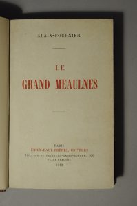 ALAIN-FOURNIER. (Henri Alban FOURNIER, dit). Le grand Meaulnes. Paris, Emile-Paul Frères, 1913. In-12, (4 ff), 366 pages, (1 f. blanc). Couvertures et dos conservés.1/2 maroquin noisette à gros grains écrasés. Tête dorée. Reliure signée...