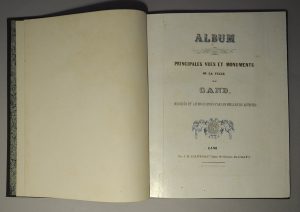 GAND. Album des principales vues et monuments de la ville de Gand, dessinés et lithographiés par les meilleurs artistes. Gand, chez Avanzo et Cie. In-folio, 1/2 chagrin du temps. 20 lithographies teintées à pleine page, dont une rempliée.