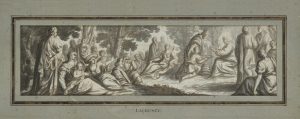 École VÉNITIENNE du XVIIIe siècle La Multiplication des pains Plume et encre brune, lavis gris. 8.5 x 33 cm
