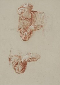 Isidore-Alexandre-Augustin PILS (Paris 1813 - Douarnenez 1875) Étude de femme tenant une écuelle Dessin à la sanguine avec rehauts de craie blanche sur vergé teinté. Timbre sec en bas à droite. 47.8 x 31.4 cm Étude pour le tableau Les...