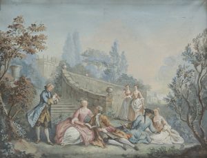 École FRANÇAISE du XIXe siècle, dans le goût de Nicolas LANCRET Deux scènes galantes Paire de gouaches. 20 x 26 cm chaque
