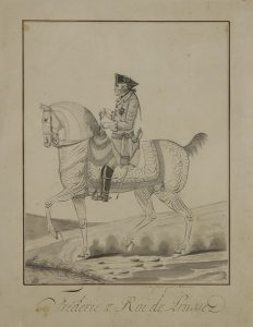 AUREST (Actif à Paris entre 1780 et 1820) Portrait de Frédéric II de Prusse Plume et encre noire, lavis gris. Annoté en bas à droite à la plume par Aurest. 40 x 31.5 cm