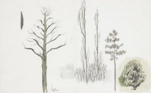 René-Georges Hermann, dit HERMANN-PAUL (1864-1940) Étude d’arbres en hiver Dessin à l’encre de chine et à l’aquarelle sur vélin. Une annotation en pied. Timbre de la vente d’atelier au verso (Galerie de Chartres, 23 octobre 2000). 26 ...