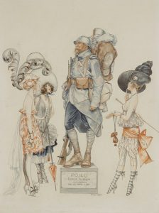 Chéri HEROUARD (1881-1951) Poilu, époque héroïque - Age des armes à feu Aquarelle. Signée et titrée en bas au milieu. 47 x 35 cm Le dessin fut publié en couverture de la revue La Vie Parisienne n°37 du 14 septembre 1918.