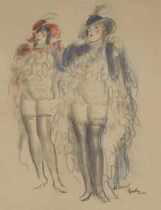 Milivoy UZELAC [bosniaque] (1897-1977) Deux travestis au Tabarin Dessin au crayon de couleurs. Signé et situé en bas à droite. 53 x 40 cm
