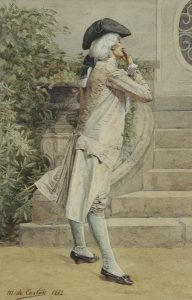 Maurice Bertrand DE CASTEX (XIXe-XXe siècle) Homme devant l’escalier, 1882 Aquarelle. Signée et datée en bas à gauche. 24 x 15.5 cm