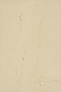 Jean-Gabriel DOMERGUE (1889-1962) Étude de nu Dessin à l’encre. Signé en bas à droite. 19 x 12.5 cm