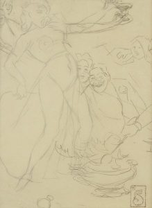 Théophile Alexandre STEINLEN (1859-1923) Au cabaret Dessin à la mine de plomb et crayon. Porte le cachet de la vente de l’atelier en bas à droite (Lugt 2341b). 16.5 x 12.5 cm