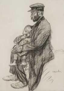 Théophile Alexandre STEINLEN (1859-1923) Homme à l’enfant Fusain. Signé en bas à droite. 61 x 44 cm