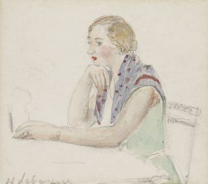 Henri LEBASQUE (1865-1937) Jeune femme au verre Dessin au crayon et aquarelle. Signé en bas à gauche. 12.5 x 14 cm