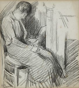 Maximilien LUCE (1858-1941) Jeune fille assise Dessin au crayon noir. Signé en bas à gauche. 19 x 17 cm