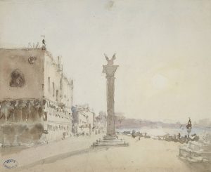 Amédée ROSIER (1831-1898) Venise, la Piazzetta au soleil Aquarelle. Porte le cachet de la vente de l’atelier en bas à gauche (Lugt 2149a). 27.5 x 33.5 cm