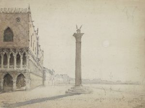 Amédée ROSIER (1831-1898) Venise, la Piazzetta Aquarelle. Porte le cachet de la vente de l’atelier en bas à gauche (Lugt 2149a). (Petites déchirures sur les bords et petites taches). 34.5 x 45.5 cm