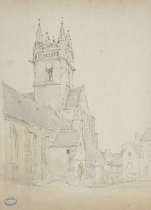 Amédée ROSIER (1831-1898) Église en rouennais Aquarelle. Porte le cachet de la vente de l’atelier en bas à gauche (Lugt 2149a). 36 x 27 cm