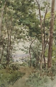 Amédée ROSIER (1831-1898) Chemin dans la forêt près de Rouen Aquarelle. Porte le cachet de la vente de l’atelier en bas à gauche (Lugt 2149a). 36 x 23.5 cm