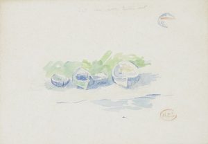 Henri Edmond CROSS (1856-1910) Barques Aquarelle. Porte le cachet de la vente de l’atelier en bas à droite (Lugt 1305a). 12.5 x 17 cm Nous remercions monsieur Patrick Offenstadt d’avoir confirmé l’authenticité de cette œuvre.
