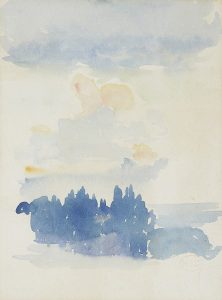 Henri Edmond CROSS (1856-1910) Coucher de soleil Aquarelle. Porte le cachet de la vente de l’atelier en bas à droite (Lugt 1305a). 17 x 13 cm Nous remercions monsieur Patrick Offenstadt d’avoir confirmé l’authenticité de cette œuvre.