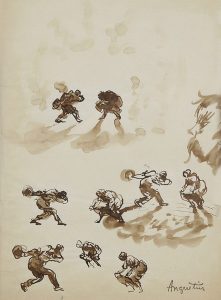 Louis ANQUETIN (1861-1932) Étude de Discobole Dessin à l’encre et lavis d’encre. Porte le cachet de la signature en bas à droite. Porte le cachet de la vente de l’atelier au dos. 27 x 21 cm
