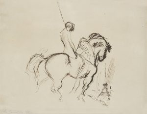 Marcel VERTES (1895-1961) La Cavalière Elsa à la Tour Eiffel Dessin à l’encre. Titré en bas à gauche. 19.5 x 25.5 cm