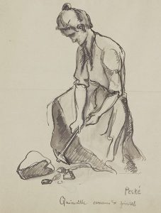 Jean Misceslas PESKE (1870-1949) Quineville, casseurs de pierres Dessin à l’encre et lavis d’encre. Signé et titré en bas à droite. 33 x 25 cm