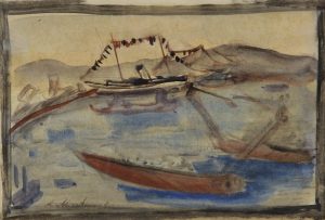 Abraham MINTCHINE (1898-1931) Le Port Aquarelle. Signée en bas à gauche. 12 x 18 cm