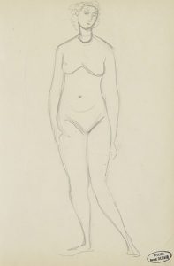 André DERAIN (1880-1954) Femme nue debout Dessin à la mine de plomb. Porte le cachet de l’atelier Derain (Lugt 668a). 23.5 x 16 cm