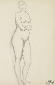 André DERAIN (1880-1954) Nu debout Dessin à la mine de plomb. Porte le cachet de l’atelier Derain (Lugt 668a). 23.5 x 16 cm