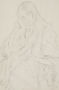 Nicolas STERNBERG (1901-c1960) Jeune femme la main dans les cheveux, 1953 Dessin au crayon. Signé et daté en bas à droite. 47 x 31.5 cm