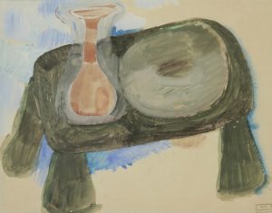 Emmanuel GONDOUIN (1883-1934) Nature morte à la carafe Aquarelle. Porte le cachet de la vente de l’atelier en bas à droite. 20.5 x 26.5 cm