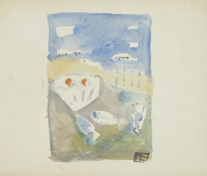 Francisco BORES [espagnol] (1898-1972) Bord de mer et poissons Aquarelle. Porte la cachet de l’atelier en bas à droite. 26 x 32 cm