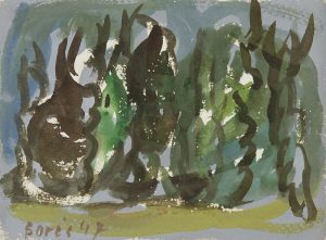 Francisco BORES [espagnol] (1898-1972) Bosquet Aquarelle. Signée et datée en bas à gauche. 14 x 19 cm