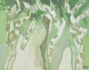 Francisco BORES [espagnol] (1898-1972) Les Bouleaux Gouache. Porte la cachet de l’atelier en bas à droite. 25 x 32 cm