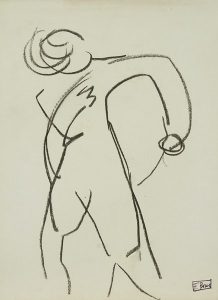 Francisco BORES [espagnol] (1898-1972) Nu assis - Personnage debout 2 dessins au crayon noir. Portent la cachet de l’atelier en bas à droite. 27 x 21 cm et 28.5 x 20.5 cm