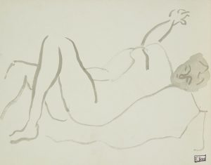 Francisco BORES [espagnol] (1898-1972) Nu couché Dessin à l’encre et lavis d’encre. Porte la cachet de l’atelier en bas à droite. 25 x 33 cm