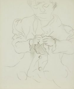 Francisco BORES [espagnol] (1898-1972) Femme tricotant - Femme de trois-quarts 2 dessins au fusain. L’un porte le cachet de l’atelier en bas à droite. 27 x 22.5 cm et 25 x 20 cm