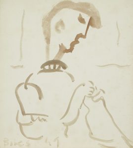 Francisco BORES [espagnol] (1898-1972) Femme à la couture, 1949 Dessin au lavis. Signé et daté en bas à gauche. 28 x 25 cm