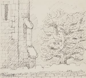 Marcel GROMAIRE (1892-1971) Château et arbre Dessin à l’encre. Porte le cachet de la signature en bas à gauche. 25 x 27 cm