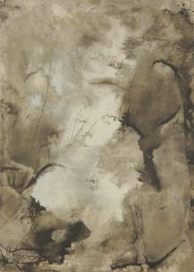 Léonor FINI (1908-1996) La Tempête Dessin au lavis et aquarelle. Signé en bas au milieu. Projet de lithographie. (Petites déchirures). 39 x 28 cm Bibliographie : William Shakespeare, La Tempête, traduction André du Bouchet, 1965,...